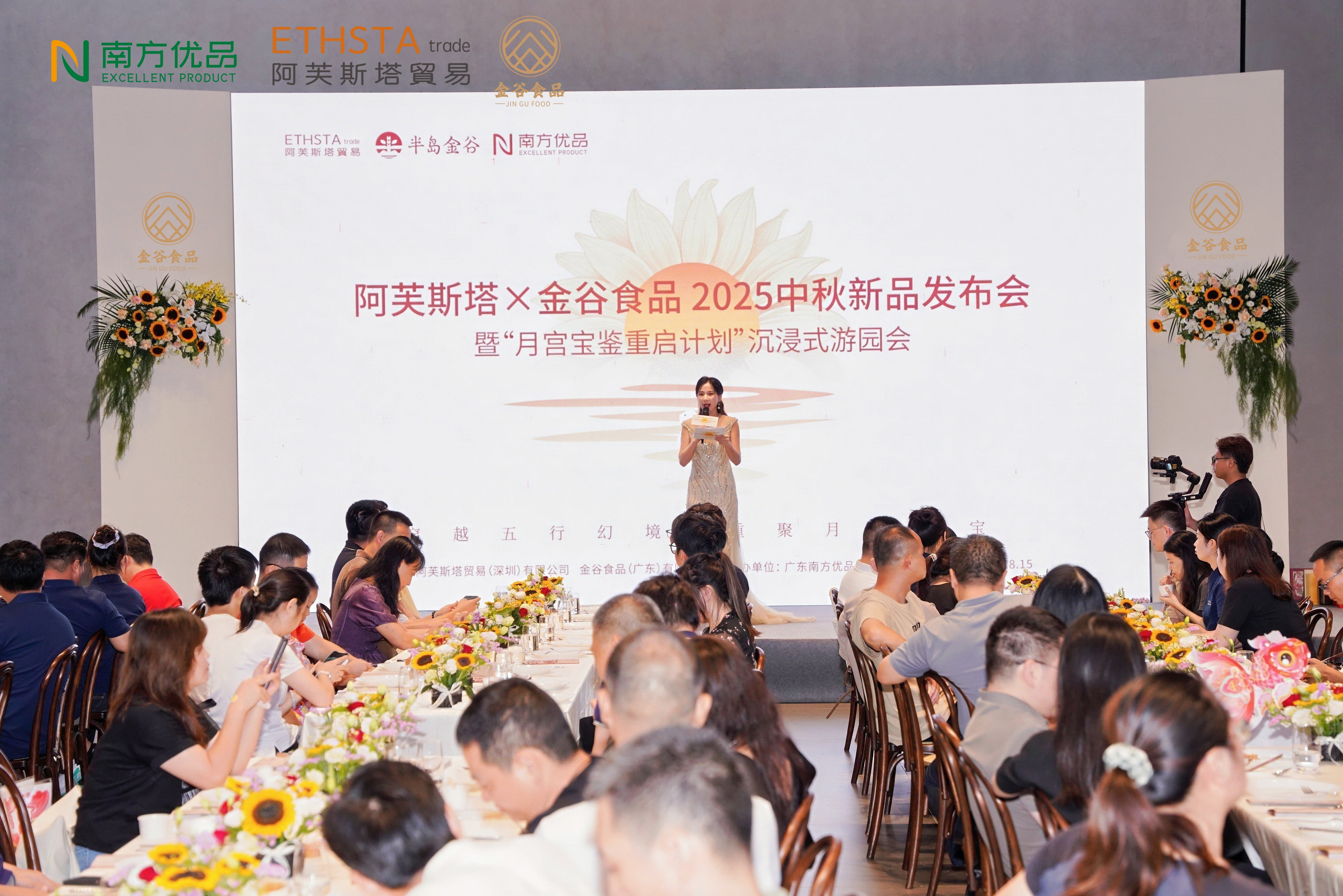 阿芙斯塔、金谷食物与南边报业南边优品有关负责东谈主出席行径,近200位艰苦客户、合作伙伴亲临现场,共同见证金谷食物2025中秋新品的秀气亮相,千里浸式体验了一场会通传统文化与蜕变兴致的月宫玄幻之旅。